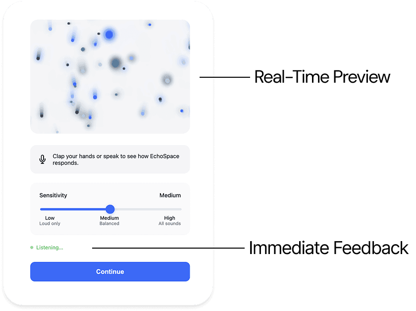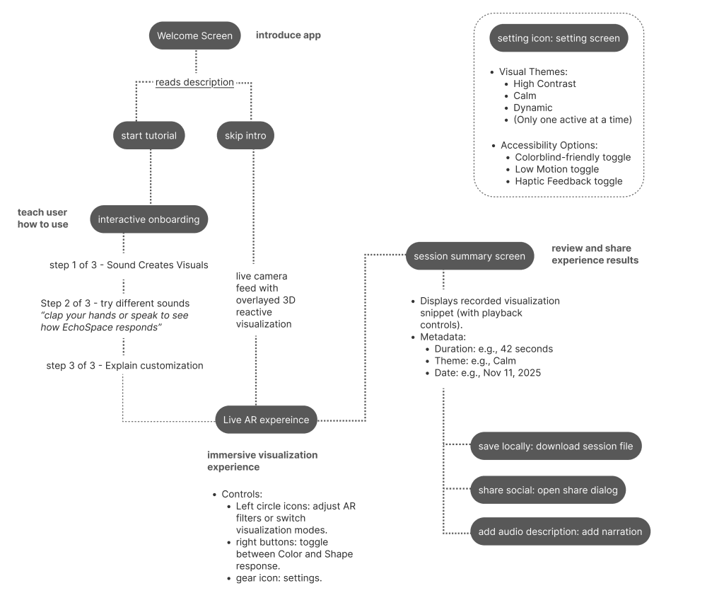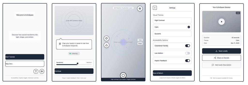 EchoSpace promotes accessibility for users with hearing impairments, offering an alternative way to perceive and interpret auditory information. This immersive visualization is also designed for artists, educators, and anyone curious about sound.