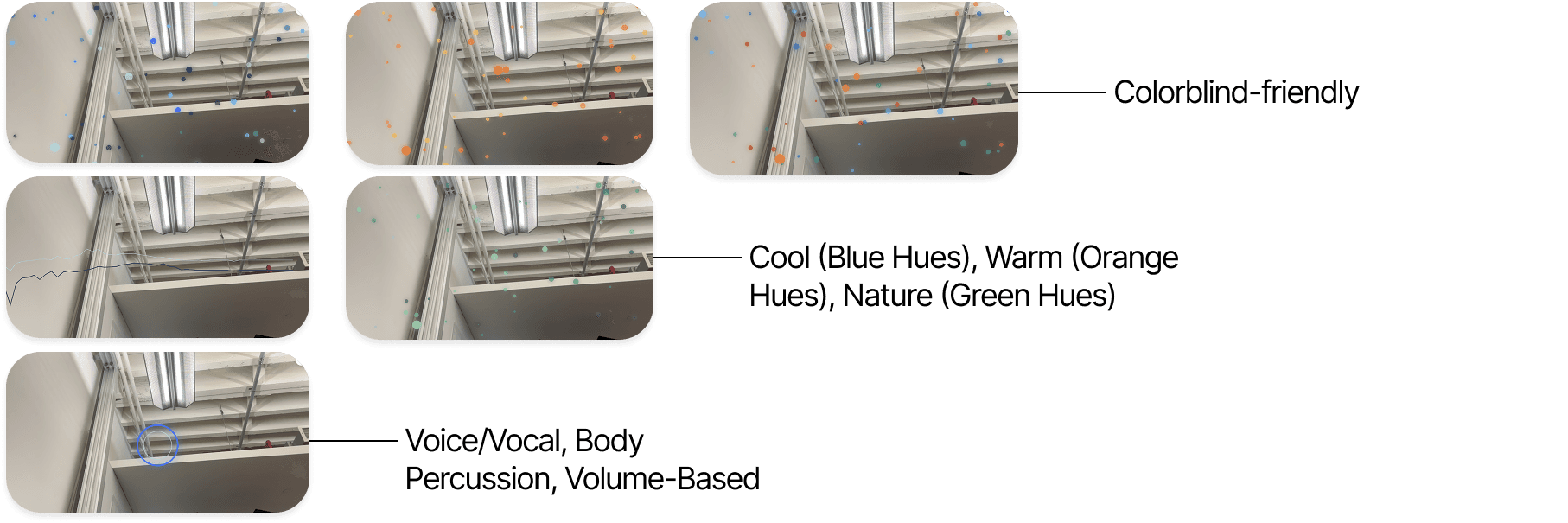 The primary challenge of this project was to create a consistent visual language for representing sound, an otherwise invisible phenomenon. The goal was to design an AR experience that allows users to interpret sound through visual elements such as pitch, volume, and rhythm, while maintaining a calm and unobtrusive interface.
