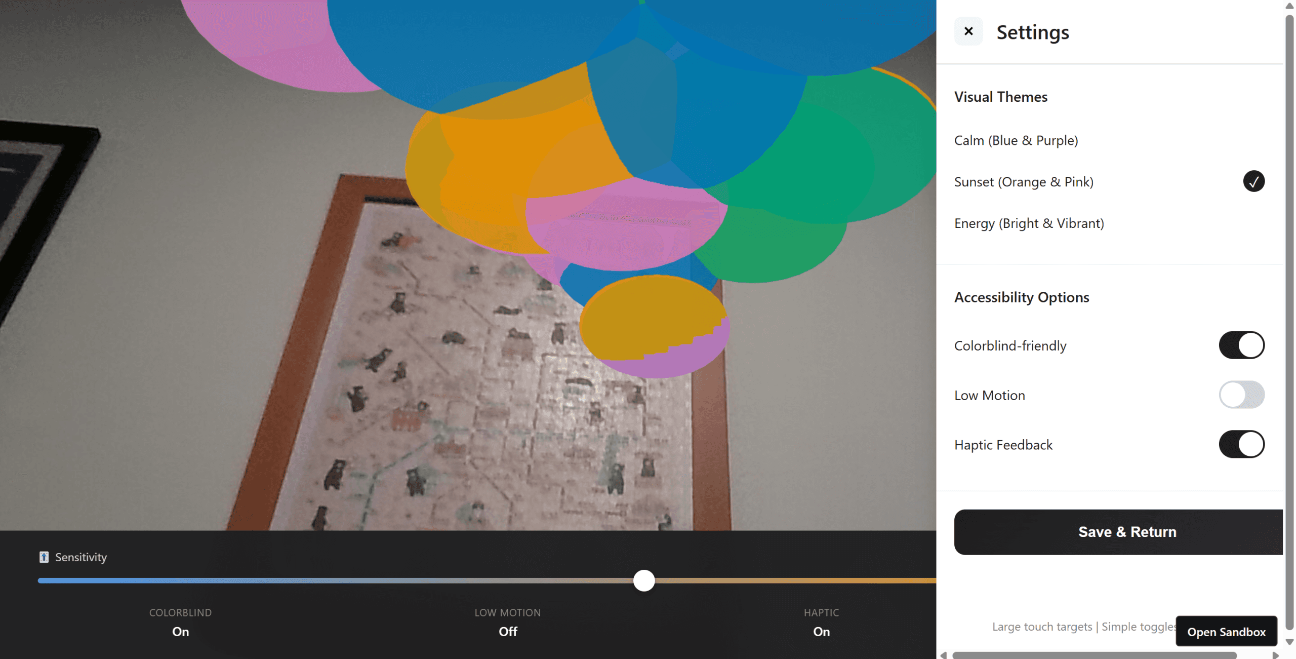 The project focused on making an invisible sense—sound—accessible. We used an accessibility-first approach that translated sound through shape and motion rather than relying on color alone.