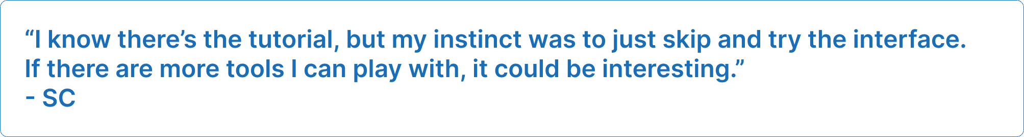 Our first round of user testing showed that most users wanted to skip the tutorial and were confused about the setup.